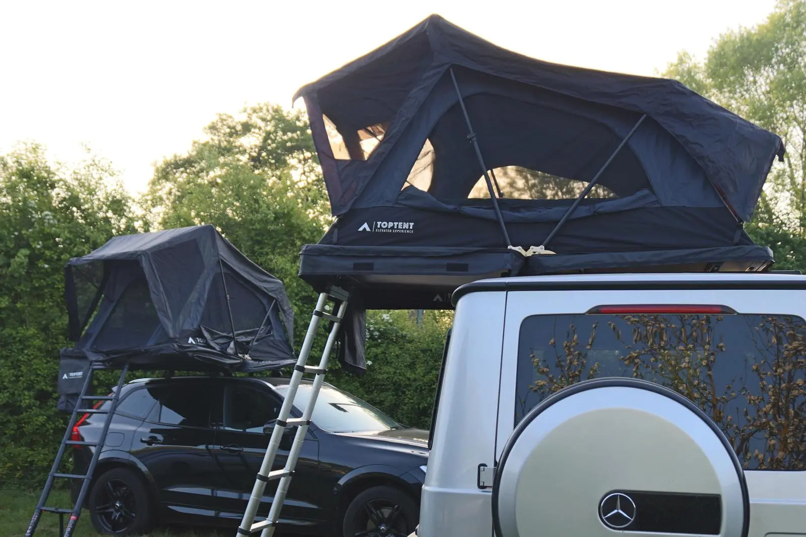 Slapen in een toptent onder de sterren, ontwaken met het gefluit van vogels, en 's ochtends verse koffie met uitzicht op de Blauwe Berg en Rode Berg.